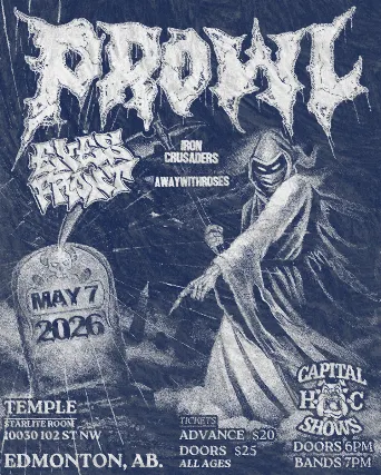 PROWL https://prowlmtl.bandcamp.com/https://www.instagram.com/prowlmtl/IRON CRUSADERShttps://ironcrusaders.bandcamp.com/https://www.instagram.com/prowlmtl/EYES FRONThttps://eyesfronthc.bandcamp.comhttps://www.instagram.com/eyesfront.hc/AWAYWITHROSEShttps://awaywithroses.bandcamp.com/https://www.instagram.com/awaywithroses/