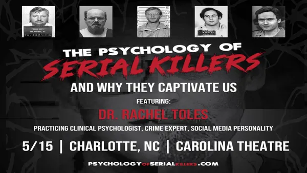 The Psychology of Serial Killers is a gripping live true crime event that dives deep into one of the most disturbing and fascinating subjects of our time. Renowned clinical psychologist and criminal expert Dr. Rachel Toles explores the terrifying minds of the world?s most infamous serial killers, revealing how many lived undetected among their neighbors for years before being apprehended. In this intense and thought-provoking presentation, Dr. Toles confronts the questions we?re both afraid and compelled to ask: Who are these notorious killers? How does a seemingly ordinary person become a mass murderer? Why are we so fascinated by them? Why are most serial killers white males? And why do some women fall in love with serial killers? Through expert analysis and real-world case studies, Dr. Toles leads audiences on a chilling journey into the psychology of these dark individuals, uncovering the patterns, myths, and unsettling truths behind their crimes.