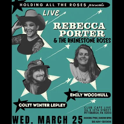 Doors 7pm | Show 8pm$12 ADV | $15 DOS 21+ Rebecca Porter: Born in Guam and raised in the Shenandoah Valley, Rebecca Porter is known for her honey-smooth voice and electrifying Appalachian honky tonk. Her 2025 debut album, Roll With the Punches has earned national and international acclaim and led to recognition in No Depression, Ed Helms Good Country, and NPRs Song of the Day. Coltt Winter Lepley: Coltt Winter Lepley is an Appalachian folksinger/songwriter from Bedford, Pennsylvania. In 2025, Coltt released his highly anticipated and long-awaited debut project for streaming services which was produced by Al Torrence, and recorded with The Allegheny High (the band that plays with Charles Wesley Godwin) in Pittsburgh, PA. Emily Woodhull: Emily Woodhull left the rush of city life behind for the quiet charm of a small Virginia town, where she found her voice in the stories and emotions of the Shenandoah Valley. Whether shes writing by lamplight or collaborating with Nashvilles finest, Emily crafts songs that feel like snapshots of lifeauthentic, heartfelt, and unforgettable.
