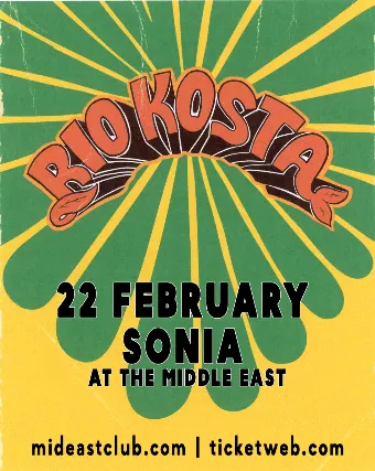 18+ w/Valid I.D. NO I.D.=NO ADMISSIONThe Middle East presents: RIO KOSTA, DJ Riley Geare - 18+ $20 Advance / $25 Day of Show 7:00pm doors NO VAPING OR SMOKING IN THE BUILDING*** DINE and SKIP the Line ***