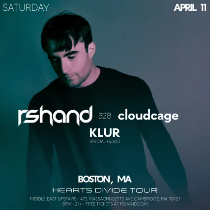 18+ w/Valid I.D. NO I.D.=NO ADMISSION The Middle East presents: rshand - 18+, FREE Advance / $10 Day of Show, 7:00 PM Doors NO VAPING OR SMOKING IN THE BUILDING*** DINE and SKIP the Line ***