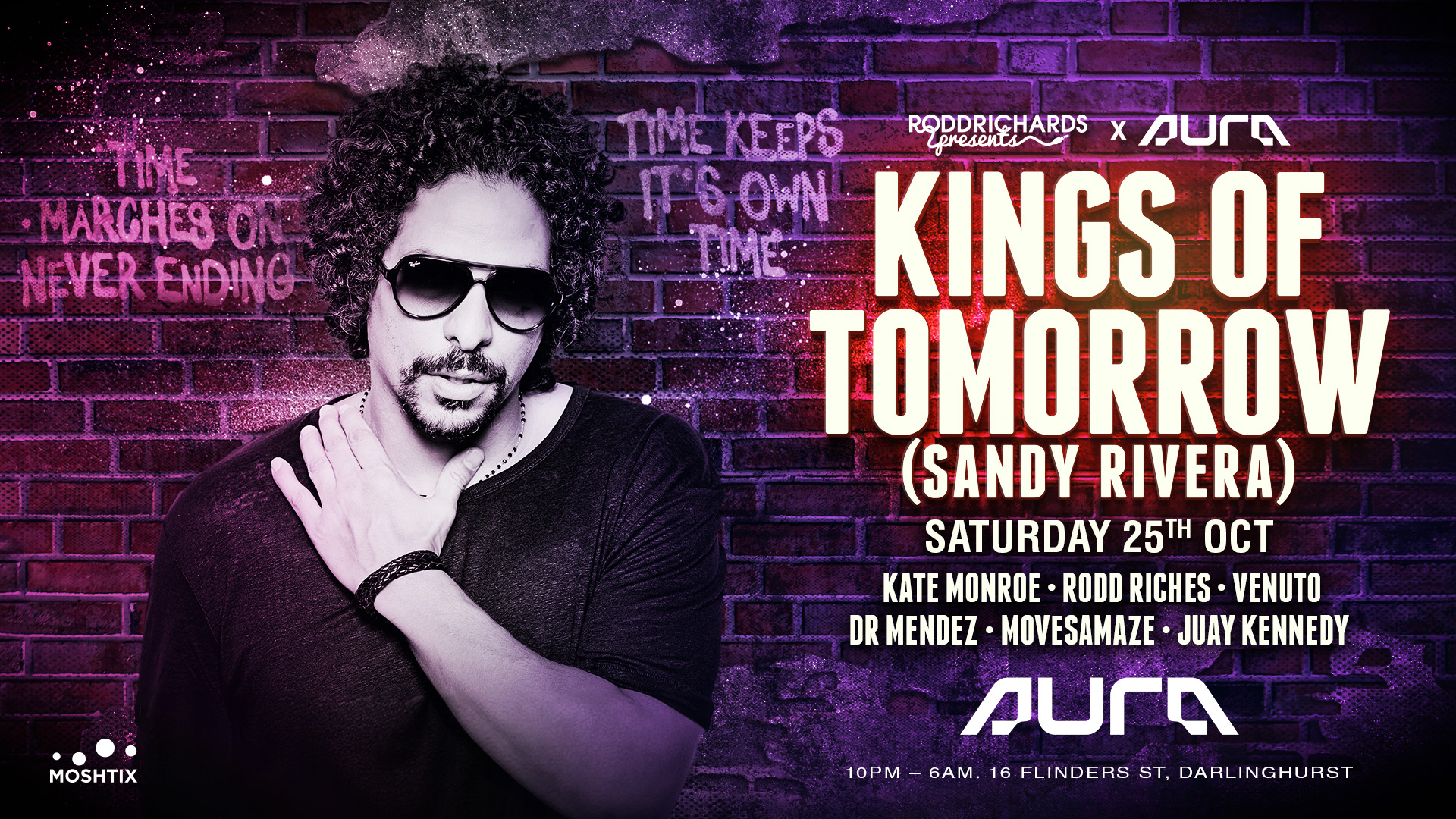 This October, house music royalty arrives in Sydney as Kings of Tomorrow (Sandy Rivera) headlines a huge night at AURA. Known for timeless anthems like Finally and a catalogue that defined the soulful house sound, Sandy’s sets are a journey through deep grooves, soaring vocals, and pure dance-floor energy.
