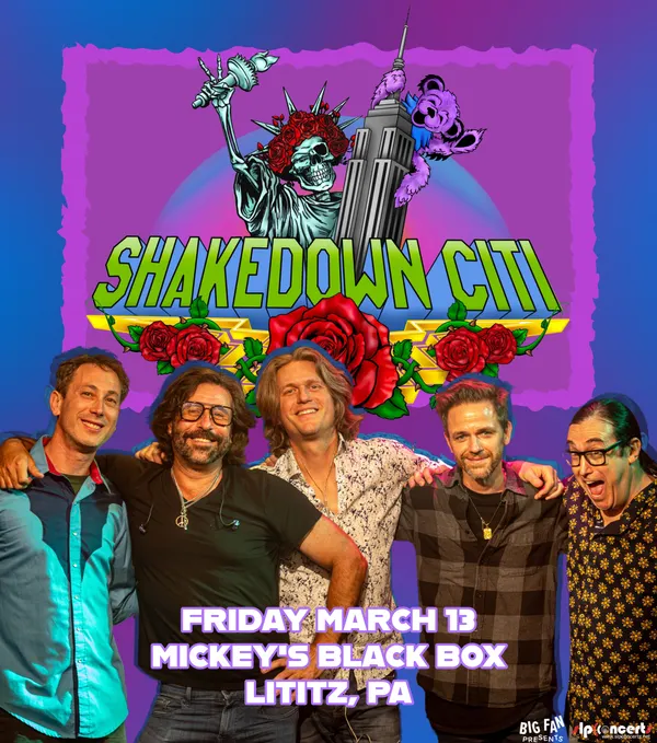 Presented by Big Fan Presents Shakedown Citi is a fresh new force on the jam band scene, born in the heart of a Grateful Dead parking lot at Citi Field in 2023. When the bands members crossed paths on Shakedown Street, something clicked - and the music hasn't stopped since. Rather than imitating the Dead, Shakedown Citi channels their spirit - creating spontaneous, soulful performances that feel alive, adventurous and totally in the moment. Each set is a journey, full of unexpected twists, deep grooves and musical conversation that pulls even the most skeptical listener into the vibe. Every Shakedown Citi show begins long before the first note. Each setlist is thoughtfully and meticulously crafted from the Dead repertoire, affiliated catalogs and beyond, balancing deep cuts and beloved anthems, rarities and reprises.