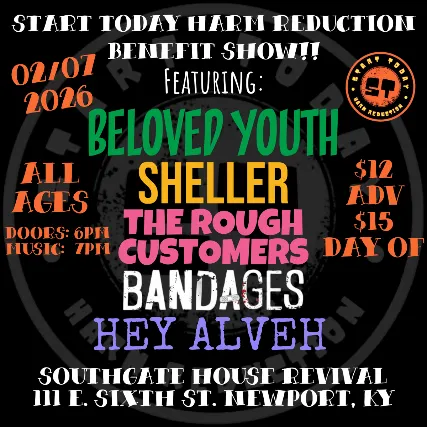 Start Today Harm Reduction Benefit ShowFt. Beloved YouthSheller, BandagesHey AlvehJazz Club Drug Ring02/07/25SGHR Revival Room Show7 pm, All Ages