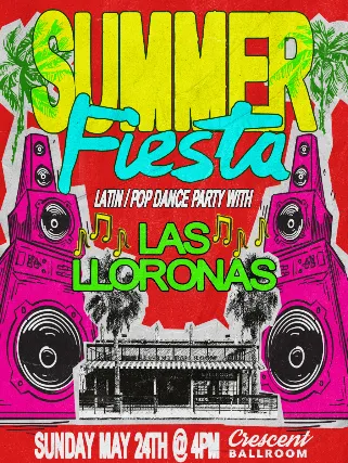 SUMMER FIESTA! A LATIN / POP DAYTIME DANCE PARTY AT CRESCENT BALLROOMfeaturingLAS LLORONASSunday, May 24th 2026Doors and DJ at 4:00 pm21+General Admission Ticket: $10 + feesPlaying the music of Rosalia, Bad Bunny, Gaga, Doja, Meg, Shakira, OV7, Spice Girls 3