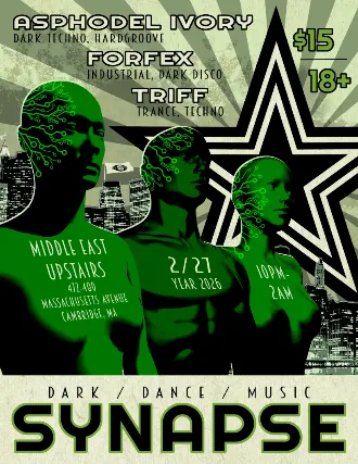 18+ w/Valid I.D. NO I.D.=NO ADMISSION The Middle East presents: Synapse - 18+, $10 before 11pm, $15 after, 10:00 PM Doors. No Advance tickets. Door only. NO VAPING OR SMOKING IN THE BUILDING*** DINE and SKIP the Line ***