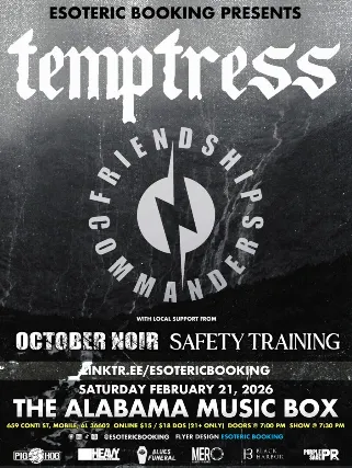 Temptress is a trio of veteran touring musicians, which includes Andi Cuba drums/vocals, Kelsey Wilson guitar/vocals, and Christian Wright bass/vocals. All members converged in Dallas, Texas and began their musical journey in 2019. In five months, these experienced players went from jamming for fun to writing and recording some potent heavy songs. They immediately began performing live as Temptress and then presented their first three original songs in a debut EP release, Temptress.Temptress has an impressive touring history over the last six years mostly supporting their debut record, released through Metal Assault Records on March 3, 2023.Their sophomore album will be released January 23, 2026 with lengthy tours to follow. Temptress:Kelsey Wilson Lead Guitar/VocalsAndi Cuba Drums, VocalsChristian Wright Bass, Vocals