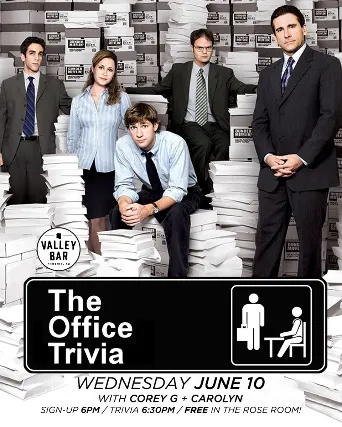 THE OFFICE TRIVIAFREE IN THE ROSE ROOM!Wednesday, June 10th 2026Sign up: 6 pmTrivia starts: 6:30 pm21+*Hosted by Corey G & Carolyn**$1 Off Craft Cans**FREE! FREE! FREE!*