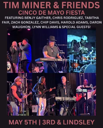 Tim Miner was discovered by Stevie Wonder who brought Tim to Motown Records. Producing and writing for Al Green, Gladys Knight, Dionne Warwick, Steve Perry, Paula Abdul, Justin Bieber, Brian McKnight, BeBe and CeCe Winans and the list goes on and on. Joining Tim on stage is his childhood friend Tabitha Fair (Sting, Lady GaGa, Bruno Mars, Steely Dan, Christopher Cross)Chris Rodriguez (Kenny Loggins, Boz Skaggs, Michael McDonald)Benjy Gaither Yes the very gifted, multi instrumental, singer, writer, producer, director son of Bill and Gloria Gaither.Andrea Pearson Singer, songwriter, musician.Zach Gonzales Texas born guitar virtuoso, singer, songwriter.DaRon Maughon The golden vocal cords. This man can sing it all!Many surprise guests! Were playing all of our favorite songs and yours. Covering over 5 decades of the greatest music ever recorded!Something for everyone.