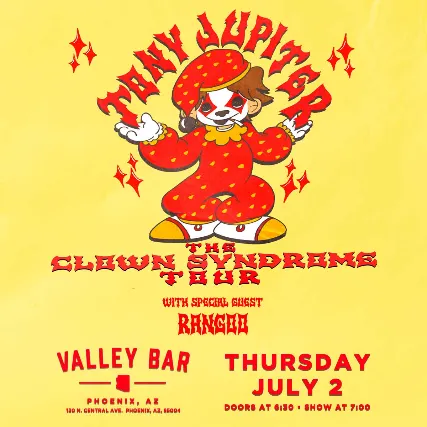 Psyko Steve PresentsTONY JUPITERwith special guestsRANGOOThursday, July 2nd 2026Doors at 6:30 / Show at 716+Advance General Admission Ticket: $18 + feesDay of Show General Admission Ticket: $20 + fees