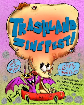 11AM / 21+ / Free Trashland Zinefest is the trashiest small-press festival in Chicago (we like to think).Come on down for a day of zines, comics, animation and more! Originally started in Brooklyn NY in 2018, Trashland is returning for a 3rd year now located in Chicago IL. Were here to celebrate work created by artists in the many, MANY forms zines can take; from autobio comics, poetry, local political comics, photography, fantasy, and so much more, were here to explore em together (especially the trashier ones). Were thrilled to share the joys of DIY self publishing and handmade work in an excellent venue, along with Busy Beaver Buttons & Merch at their own make-it-yourself button station, and a curated selection of trashy animation loops provided by Malt Adult running throughout the event. More info about the event can be found at www.trashlandzinefest.com, and follow us at @trashland_zinefest on instagram for updates on vendors and exciting sneak peaks coming to the space!