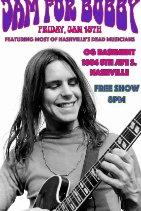 OG Basement honors the incredible legacy Bob Weir leaves behind with most of Nashvilles Dead centric musicians on hand.Rich Mahan and friends Allen Thompson, Jacob Groopman, Luke and Ginger Sands, Mike Webb, Jeffery Howell, Jen Mahan, Rich Mahan, Grayson Downs, Clint Maine, Jon Mahaffery, Bobby Frank, Shane Mayo, Josh Womack, Lewis Stubbs, Mort, Daniel Seymour, Ray Dunham, Mike Ford, Mike Lawson head up this fantastic musical celebration. Join us. Tickets available at thebasementnashville.com​Sponsored by the fine folks at Tennessee Brew Works.