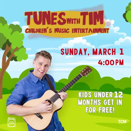 Impact Fuel Room s Music Entertainment Sunday, March 1st!- Kids under 12 months get in for free!! - All tables will be low tops for easy sitting with the kiddos- (Kids and parents are allowed to leave tables to dance in GA section!)All AgesDoors | 3:30pmShow | 4pm-------------------------------------Tune With TimFacebook Website YouTube InstagramSince 2013...critically acclaimed Chicago-based childrens musician, Tunes With Tim, has been using his wide repertoire of both original music movies - to inspire families to sing, play s second full-length album, Were All Human, was a 2021 National Parenting Product Awards Winner and is available on all digital music streaming platforms. Get to know Tim via his YouTube channel, where you can sing & play along with Tim to a variety of family-friendly music video content on demand!