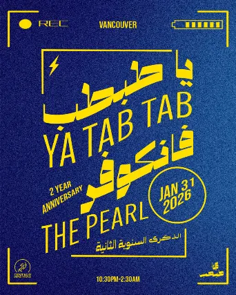 Legal Age 19+ (Valid Photo I.D. Required)Canadas favourite Arabic dance party, Ya Tab Tab Night, is returning to celebrate the 2nd anniversary of its blockbuster haflas in Vancouver! Two years ago, the very first Vancouver gig sold out one The Pearl on Granville! This January 31st , we will be back at the iconic Pearl to celebrate Ya Tab Tabs anniversary in Vancouver with an unforgettable show that will keep you dancing all night long!