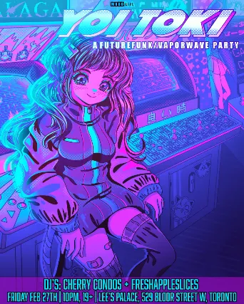 Legal Age 19+ (Valid Photo I.D. Required)MODO-LIVE Presents:Yoi Toki - A Future Funk/Vaporwave PartyYoi Toki returns to Toronto with a whole lot of Future Funk sounds to dance to.Were thrilled to join you all for a party like no other, where every beat is an invitation to a good time!DJs: Cherry Condos + FreshAppleSlices(mixing the funkiest tracks, your favorites + fresh new releases) This is a party for fans of Vantage, Macross 82-99, Yung Bae, Desired, Moe Shop, Saint Pepsi, Engelwood, Night Tempo, Retro Disco & Funk sounds, City Pop, French House and anime aesthetics. February 27, 2026Lees PalaceToronto, ON